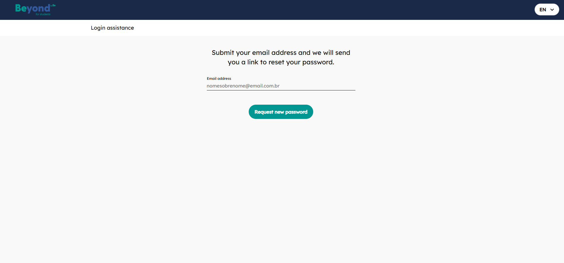 Digite seu e-mail cadastrado e clique no botĂŁo Request new password