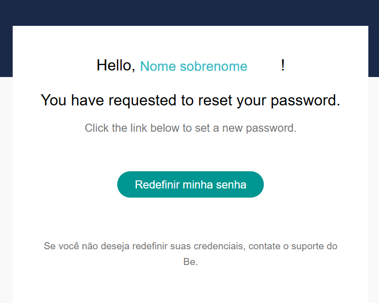 Acesse o e-mail recebido e clique no botĂŁo Redefinir minha senha